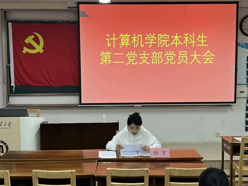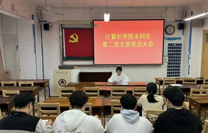 本科生第二党支部于JC406召开党员大会,全体党员参与。