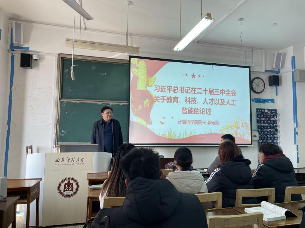 院长李光顺为学生讲授主题为“习近平总书记在党的二十届三中全会关于教育、科技、人才以及人工智能的论述”的党课。