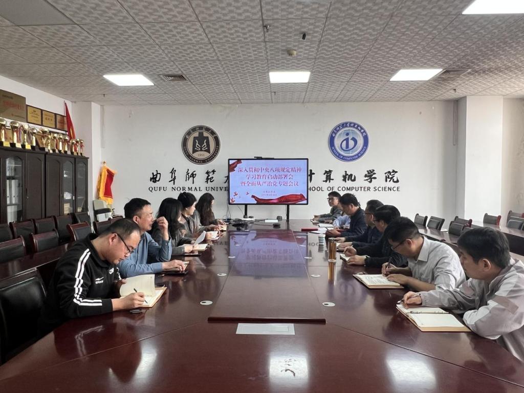 于JC1011会议室召开深入贯彻中央八项规定精神学习教育启动部署会暨全面从严治党专题会议,会议由学院党委书记张明洁主持。