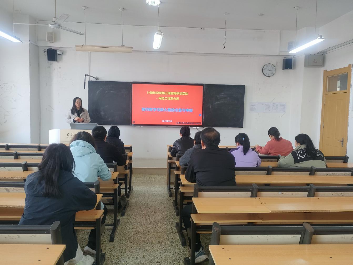 人工智能系举行主题为“人工智能赋能课程教学”的研训活动。老师们就人工智能技术在教育领域的创新应用展开了热烈的讨论,涵盖智能备课、个性化学习分析、人工智能课堂互动、DeepSeeK等前沿主题。马跃峰副教授介绍了如何利用大模型工具优化教学流程、提升课堂效率。其他教师结合各自的经历,深入探讨了人工智能技术在算法设计、语言编程、数据可视化等课程中的实践路径和效果分析。