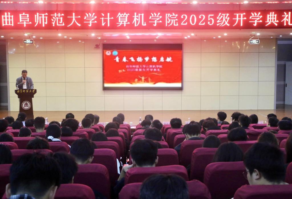 于图书馆报告厅隆重举行2025级新生开学典礼。2001级杰出校友刘洪强、学院党委书记张明洁、院长李光顺、副院长尚军亮、教师代表及全体2025级新生共同出席典礼。典礼由学院党委副书记孙旭春主持。