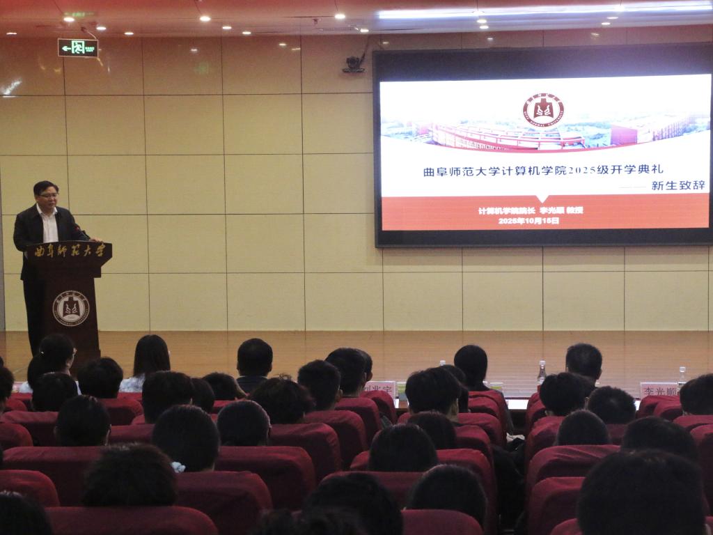 李光顺为全体新生作了“院长论坛”主题报告。李院长在报告中系统梳理并展示了学院深厚的学术积淀、雄厚的办学实力与辉煌的发展成就,生动描绘了计算机学科广阔的发展前景与时代机遇。他的报告使新生们深刻感受到了作为计算机学子的使命与荣光,也对未来四年的学习生涯充满了信心与期待。