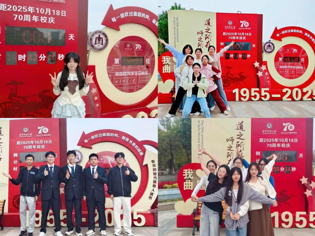 为进一步定格校庆期待、凝聚学子情感,学院组织开展校庆倒计时合影活动。学子们积极响应号召,以镜头为笔、以笑容为墨,在印有时光倒计时与 “曲园” 元素的立牌前有序集结。大家或独自打卡、或结伴而来,宿舍室友的默契笑颜、班级集体的亲切互动,共同构成温暖画面。