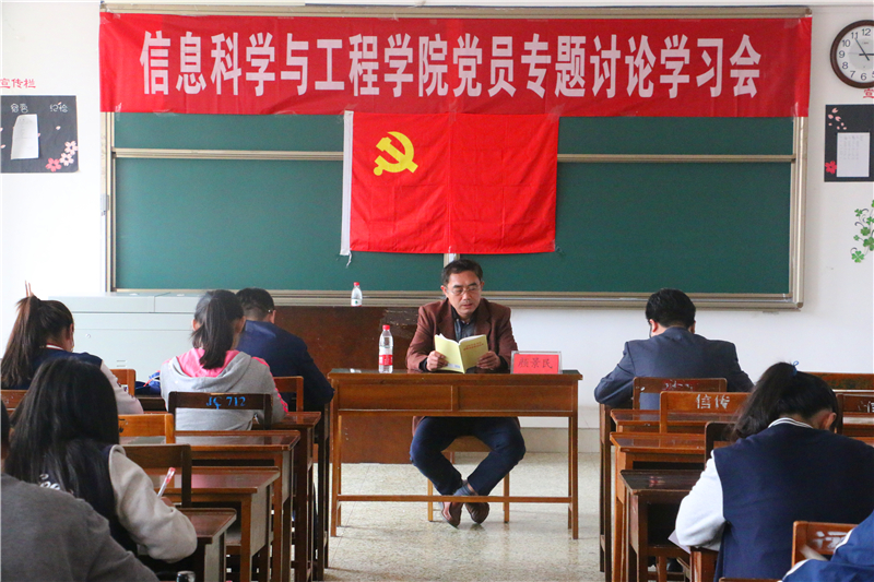 为加强信息科学与工程学院党委内部建设,2016年9月28日下午2:30,信息科学与工程学院于C405召开了党员专题讨论学习会。信息科学与工程学院党委副书记颜景民、团委书记毕文波、辅导员姜振栋主持了本次学习会。
