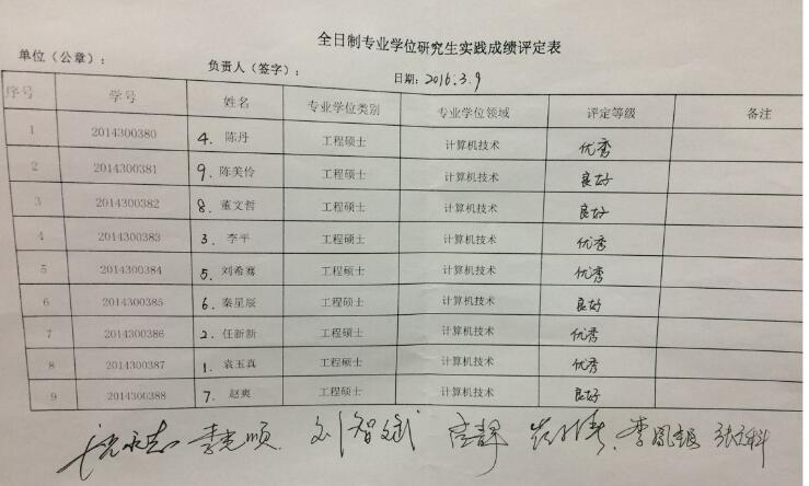 附:本次全日制专业学位研究生实践报告成绩