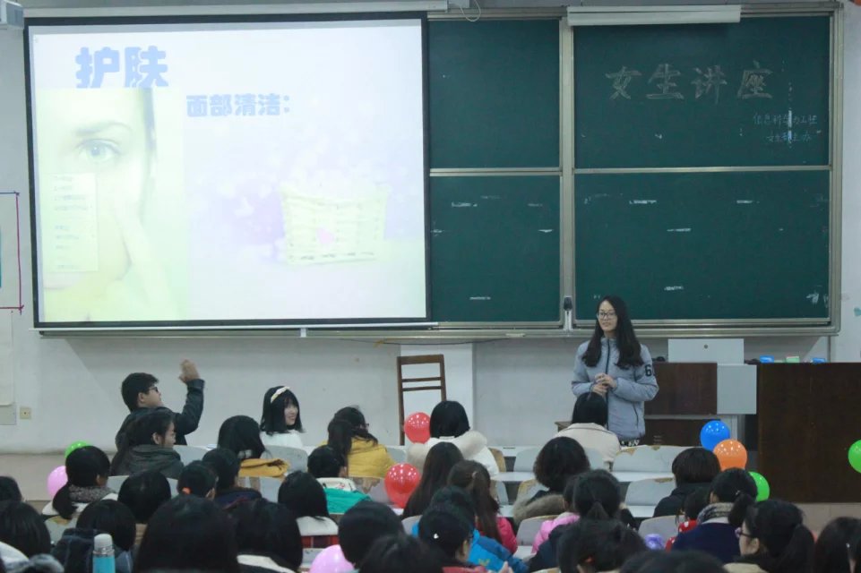 为了向15级女生分享一些日常护肤的知识和基本的化妆技巧,增强女生自我保护和防范意识,11月21日15:30,在E楼的104教室,信息科学与工程学院女生部举办了以“扬健康的帆、圆美丽的梦”为主题的女生讲座。信息科学与工程学院辅导员鲁瑞丽老师出席并主持了本次活动。