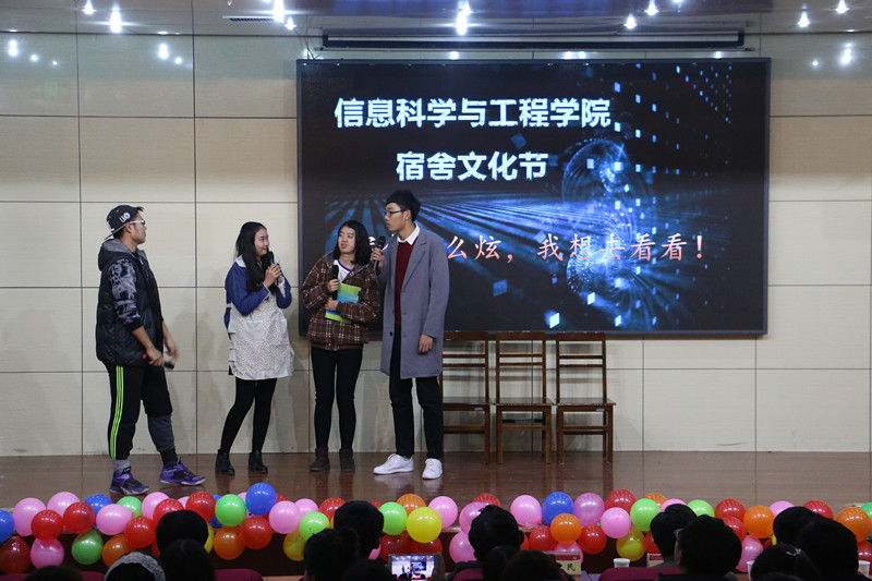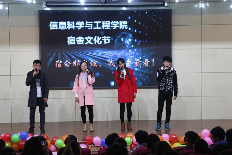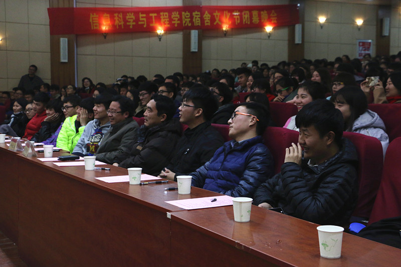 为营造大学生健康向上的宿舍文化氛围,引导优良舍风的养成,使宿舍内务更加规整。2015年11月28日晚7:00,信息科学与工程学院宿舍文化节闭幕晚会于图书馆报告厅举行。信息科学与工程学院党总支副书记颜景民,团总支书记毕文波出席并观看了此次晚会。