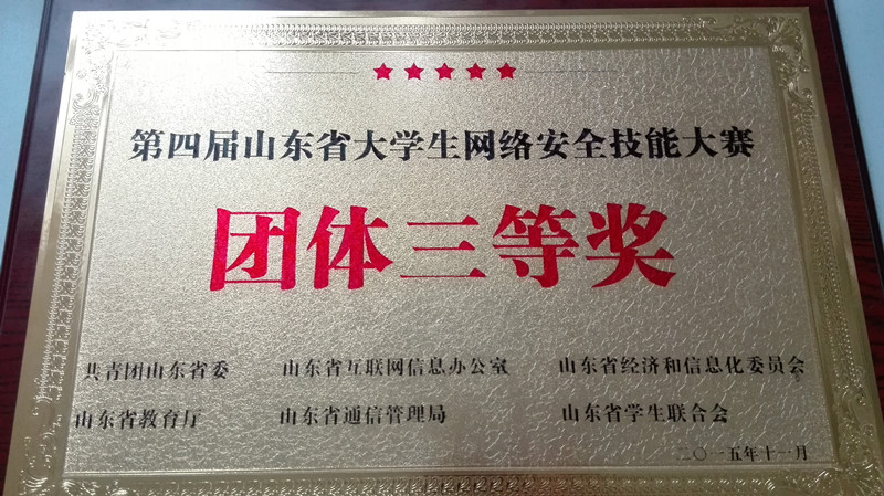 “山东省大学生网络安全技能大赛”是山东省高校间网络安全最高规格的专业赛事,已成功举办第四届,为各高校开展信息安全教育和广大信息安全爱好者搭建了一个兼具广度和深度的沟通平台。信息科学与工程学院代表我校两次参赛,此次取得团体三等奖的好成绩。分析成功原因,离不开老师们的悉心指导和赛前的充分准备。本次比赛在大学校园里营造了重视网络安全教育和发现网络安全技术人才的良好氛围,为提高全省网络安全保障能力和网络安全水平发挥了积极作用。信息科学与工程学院将在普及信息安全知识,提高大学生信息安全技能,培养高水平的信息安全技术人才等方面继续做出努力,在更多的大赛中斩获佳绩。