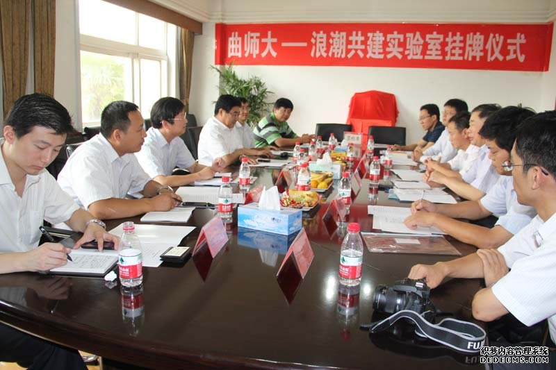 孙文亮与邵长臣代表校企双方为共建实验室揭牌,刘立山与邵长臣代表双方签订了合作协议。邵长臣代表企业讲话,对学校的支持表示感谢,并简要介绍了浪潮优派科技教育有限公司的基本情况,希望通过联合共建实验室,为企业发展和学校实验室建设提供有力条件,期待双方的合作进一步加深,实现校企双赢。