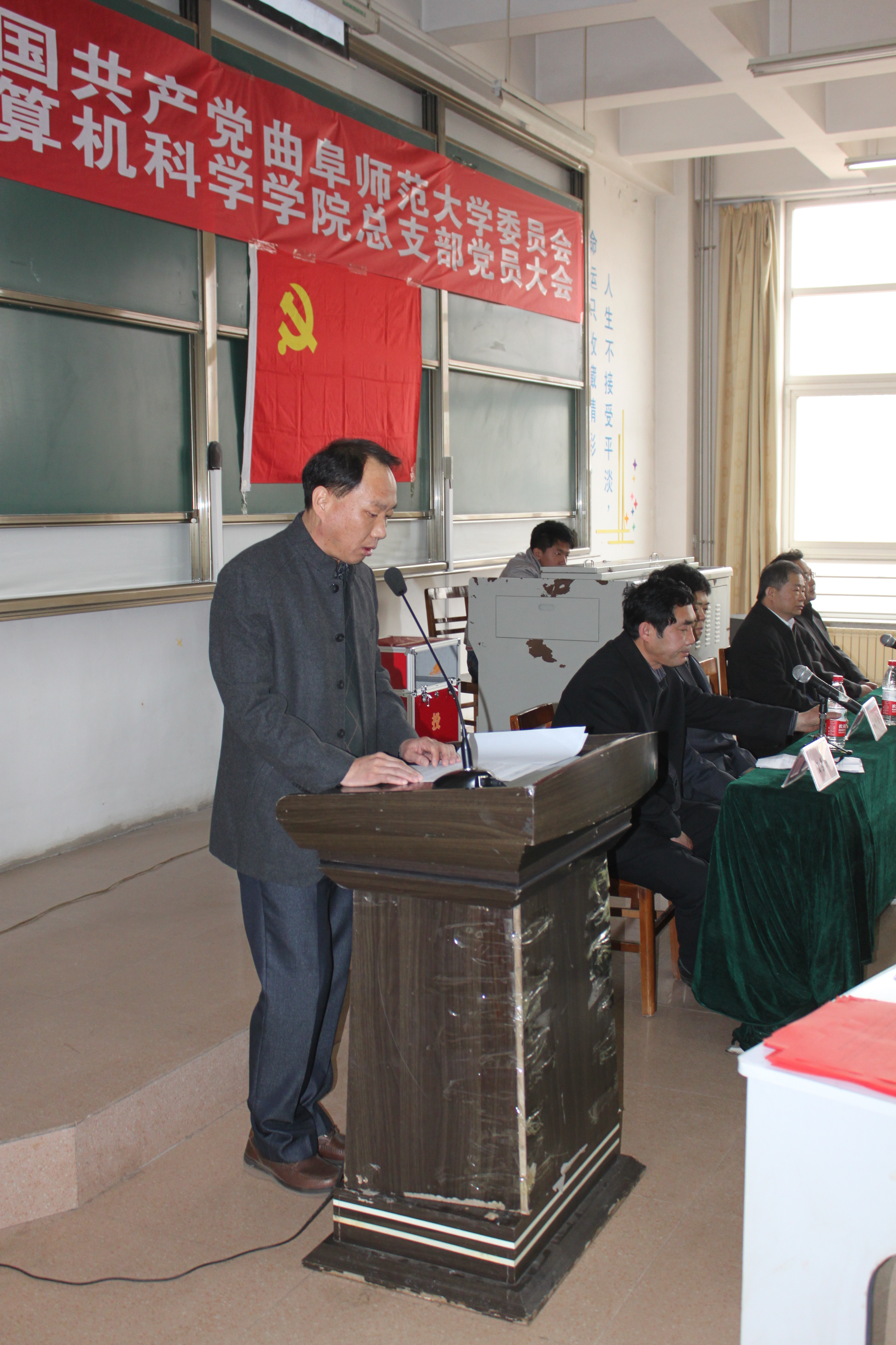 经全体正式党员投票选举,大会选举产生了由张书东、颜景民、高仲合、禹继国、赵景秀组成的计算机科学学院新一届党总支。最后,党员大会表决通过了《关于中国共产党计算机科学学院总支部工作报告的决议(草案)》。大会在雄壮的《国际歌》中胜利闭幕。在随后召开的新一届党总支全委会上,张书东同志、颜景民同志分别当选为计算机科学学院党总支书记、副书记。