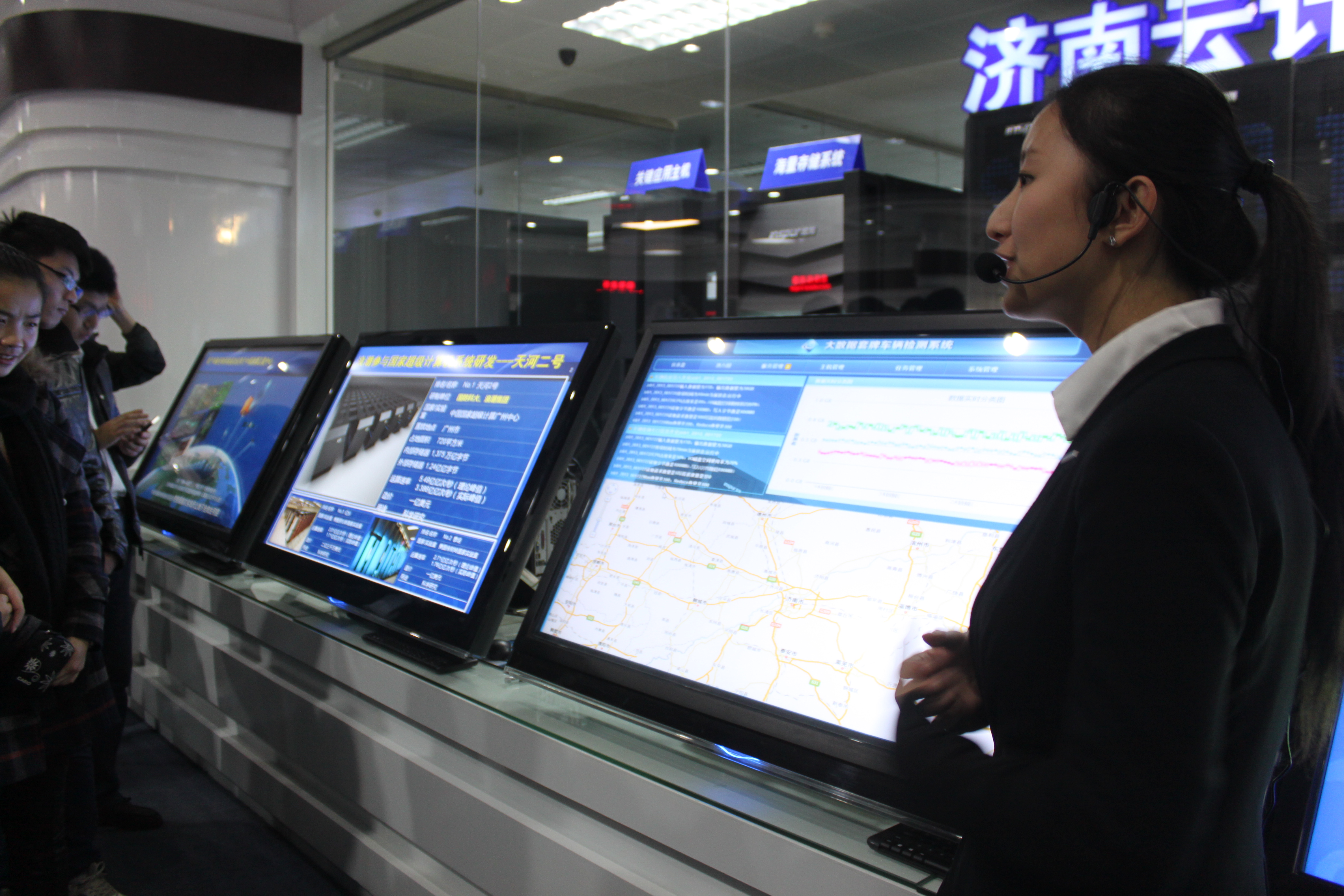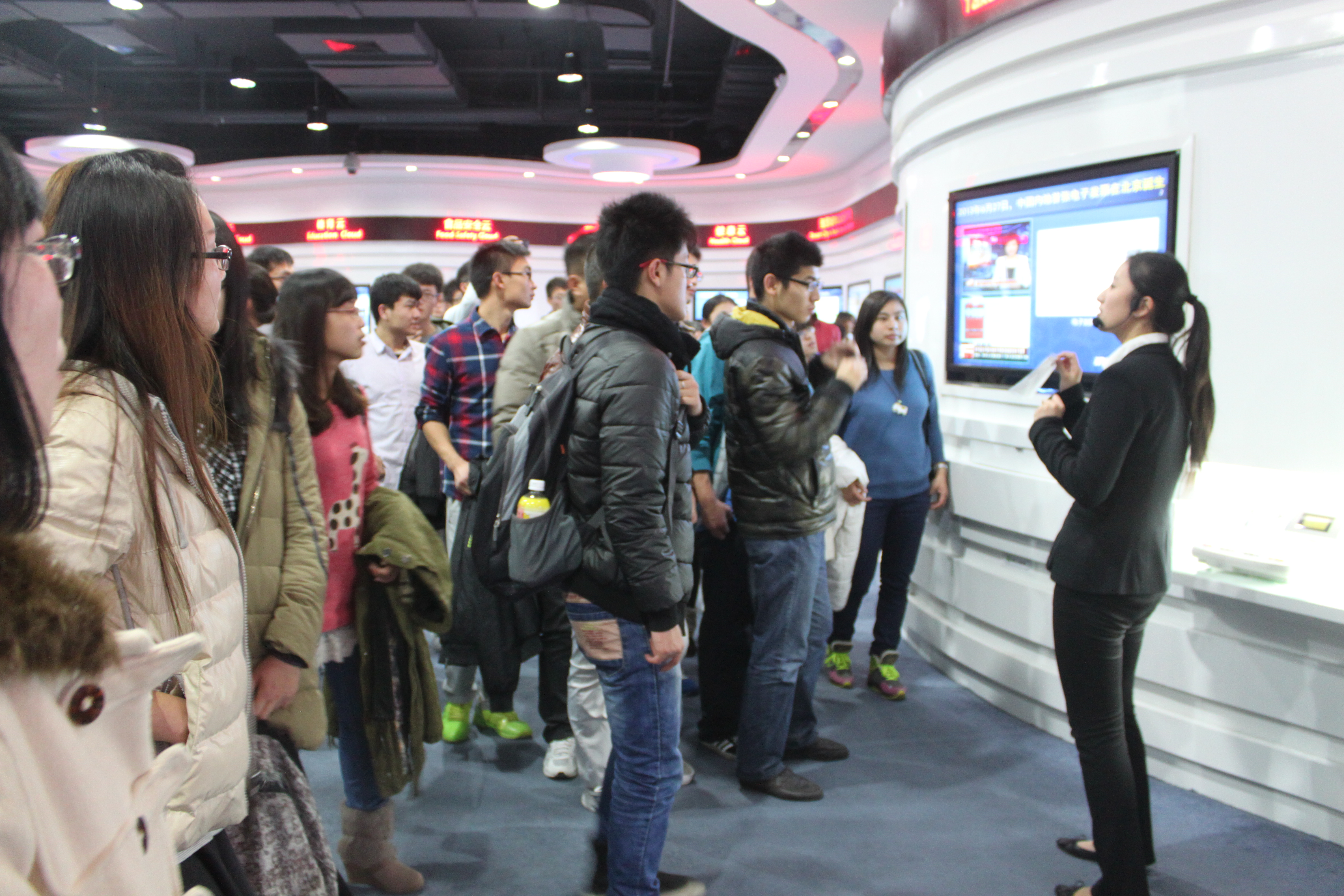 在浪潮科技园展厅,师生们领略了浪潮集团的斗地主,亲身体验了浪潮集团最新最前沿的科技产品。陈亮博士在浪潮集团培训室针对大数据和云计算等技术进行了简短的技术讲座,他希望广大同学“针对企业对计算机专业人才的需求,不断提高自己的专业技能,不仅为日后更好的就业打下坚实的基础而且能够为科技发展贡献一份力量”。