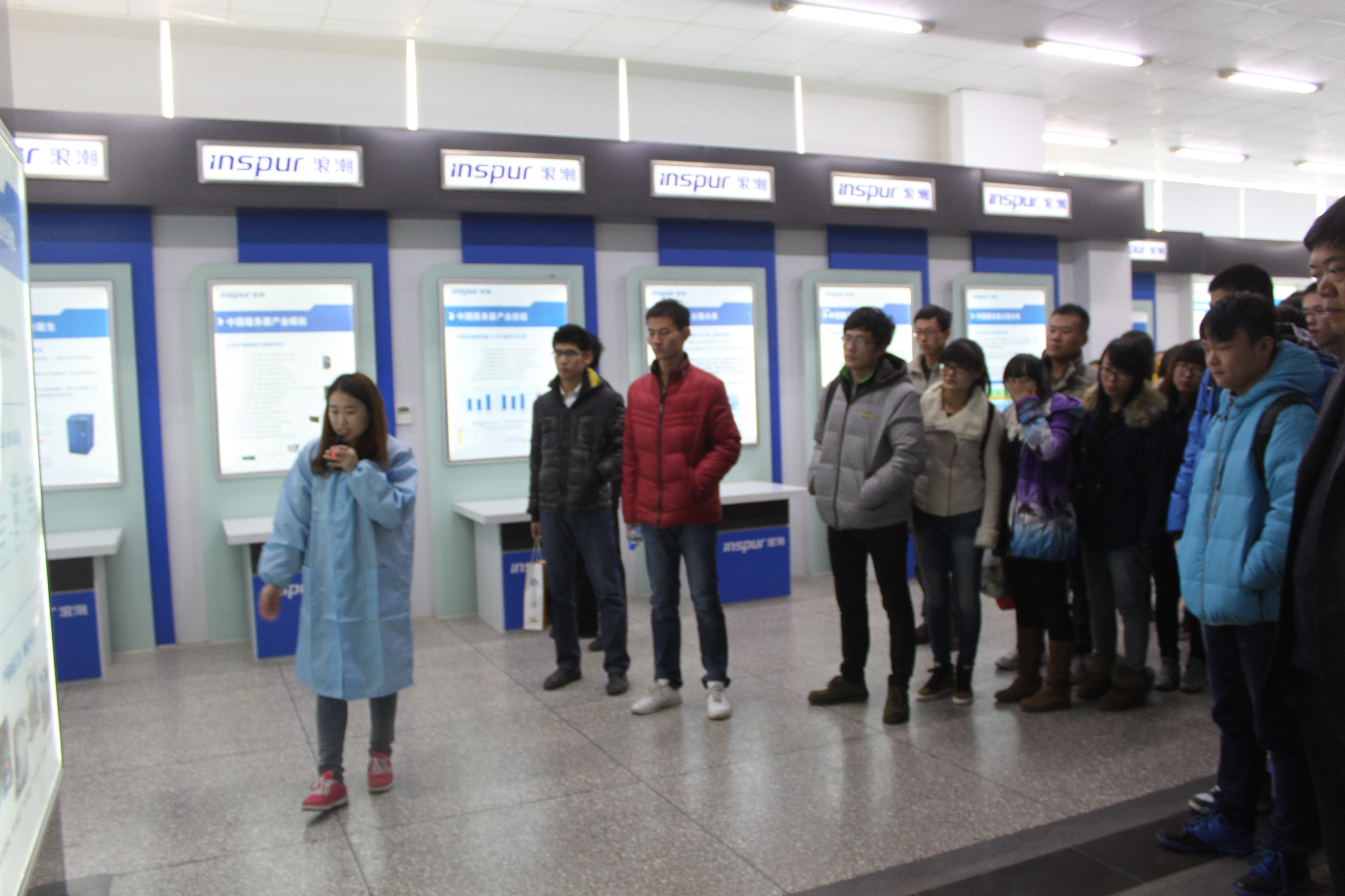 2013年12月6日,我院组织2011级网络工程专业70余名学生在副院长高仲合、党总支副书记颜景民、专业课老师司广涛、徐小龙、团总支书记毕文波等老师的带领下前往济南浪潮集团进行参观学习。我院师生在浪潮优派公司杨立国、陈亮两位老师的带领下先后参观了浪潮集团的服务器生产线、浪潮集团云计算中心和展示大厅,听取了公司人员对于浪潮服务器产业的发展、浪潮公司的发展现状及未来的规划的讲解。