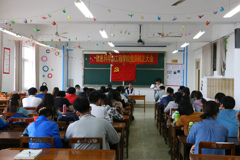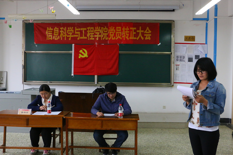 为做好预备党员转正工作,信息科学与工程学院于2015年5月29日下午3:00,在C406召开了党员转正大会。主持此次转正大会的是信息科学与工程学院党总支副书记颜景民,辅导员鲁瑞丽老师。参加此次转正大会的为信息科学与工程学院全体预备党员。