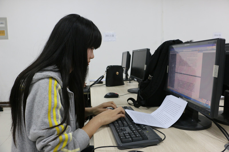 本次海选共有两部分组成。第一部分是在规定的时间内盲打规定的内容,第二部分为听预定的录音进行录入。比赛开始后,同学们快速敲打键盘,输入比赛规定的内容。紧随其后的第二环节为模拟速录师日常工作,同学们聚精会神的听取录音内容,迅速将其打出,趣味十足。此次比赛正式结束后,由场内的工作统计人员进行成绩的确认。据悉,此次比赛脱颖而出的四名选手将代表学校参加决赛。