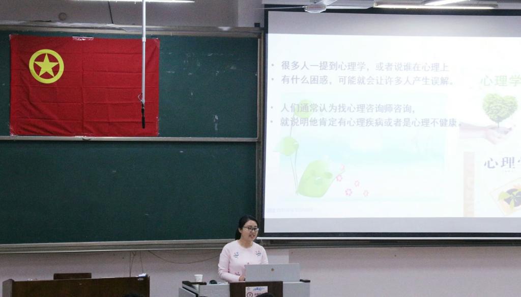 活动伊始,陈学宁老师结合实例,从什么是心理学、什么是心理咨询、如何有阳光心态、如何处理人际关系四个方面给与会学生干部上了一堂精彩的心理健康教育课。她重点介绍心理咨询保密性、理解性、时限性、助人自助、“来者不拒,去者不追”等原则,并希望与会学生干部高度重视自身心理健康,积极调整心情,运用今天所学方法解决情绪问题,拥有阳光心态。随后,鲁瑞丽老师就高校资助政策和保险报销的有关事宜进行介绍。她指出学校和学院有多种政策支持贫困生完成学业,并希望贫困生们可以认真完成学业,积极参加各类比赛,自立自强,靠自身努力给家庭减负。