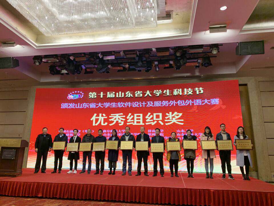 2月3日,山东省大学生软件设计大赛颁奖仪式在济南举行,信息科学与工程学院、软件学院学生在该项赛事中取得优异成绩,共获得一等奖八项、二等奖项十项、三等奖二十三项,刘智斌、祝永志、王华、周子力、郭吉楠等老师被评为优秀指导教师,我校被评为优秀组织单位。
