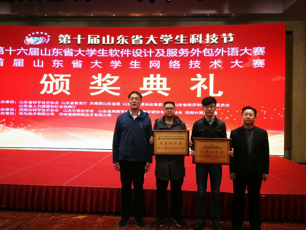 12月3日,山东省大学生网络技术大赛颁奖仪式在济南举行,我校信息科学与工程学院学生表现优秀,获得省级一等奖一项、二等奖两项、三等奖四项、优秀奖三项,李凤银刘效武两位老师被评为优秀指导教师,我校被评为优秀组织单位。