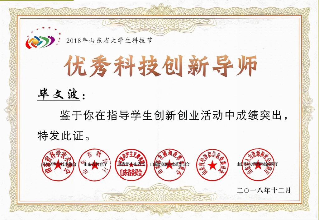 近日,山东省科协公布了2018年山东省大学生优秀创客、优秀科技创新导师、科技节优秀组织单位等一批先进典型,我校信息科学与工程学院团委书记毕文波、2016级学生唐德靖获评山东省优秀科技创新导师和山东省大学生优秀创客。