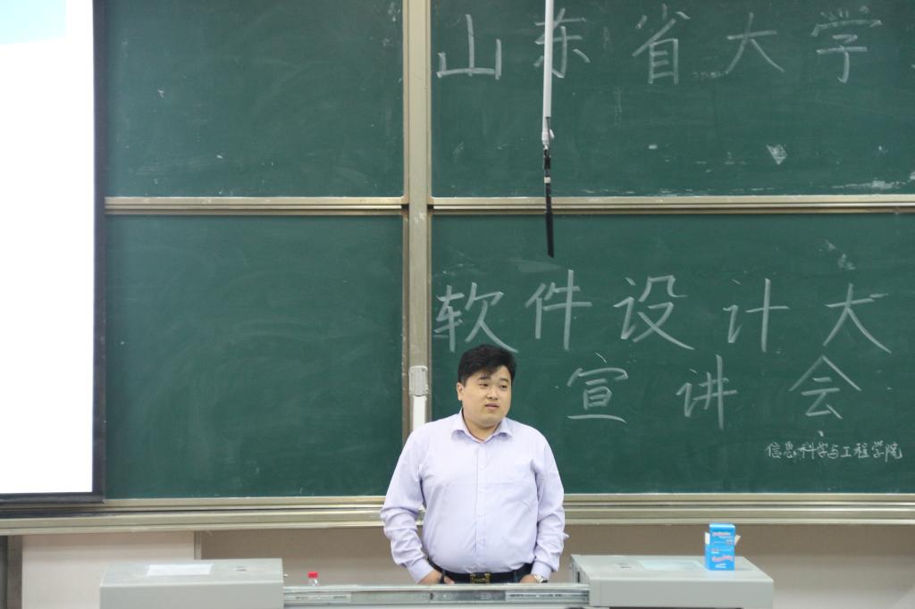 为开拓同学们的创新思维,进一步培养同学们的实践能力,5月13日晚上七点,我院于E105教室召开第17届山东省大学生软件设计大赛的巡回报告会,我院诚邀到济南计算机学会办公室副主任尚玉新作宣讲报告,团委书记毕文波主持本次报告会,我院学生踊跃参加。