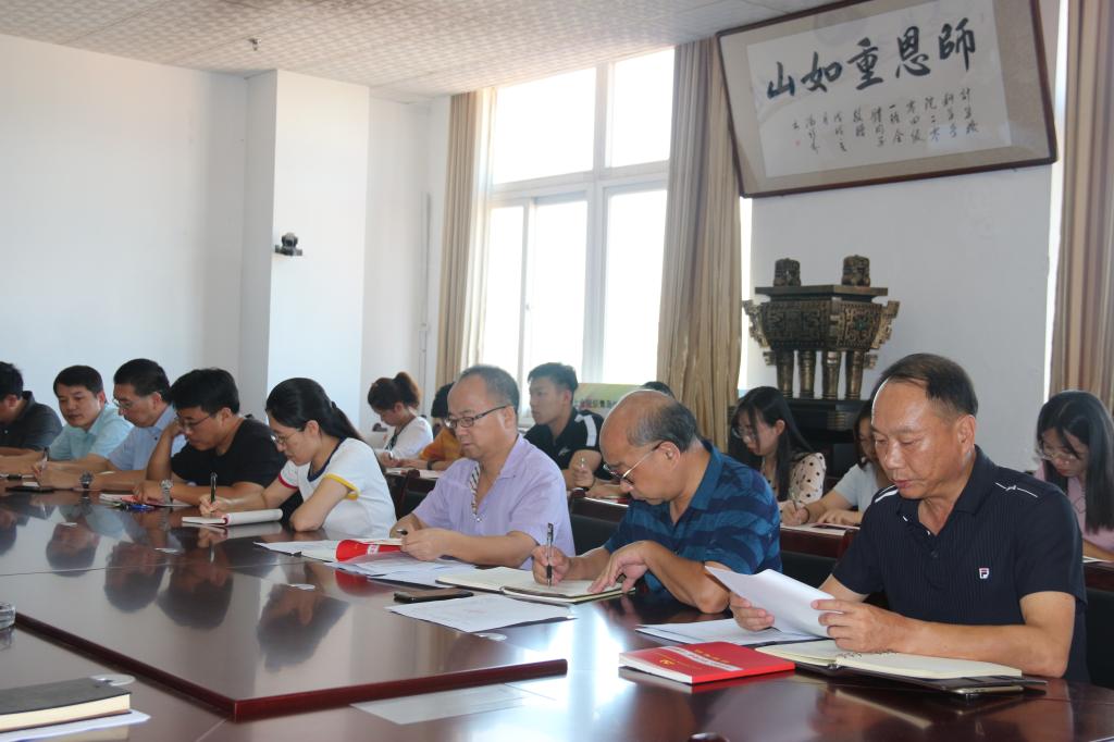 会议伊始,党委书记张书东引领大家学习习近平总书记重要讲话精神,切实增强“四个意识”、坚定“四个自信”、做到“两个维护”,认真抓好学习贯彻落实,深刻领会和把握主题教育的重大意义、优秀内容、重点措施、着力点、自我革命要求和领导带头的实践要求,全面加强思想、组织、作风、纪律、制度和党风廉政建设。张书东强调主题教育期间要牢抓专项整治,确保主题教育的成效,同时要求每位党员认真制定自学计划,各支部落实专题学习。