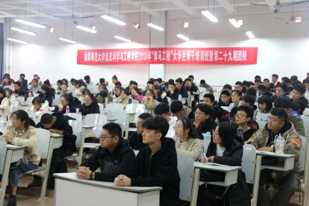 为提高学院学生管理工作水平,促进学生干部健康成长发展,进一步彰显学院工作影响力,11月16日上午8点,信息科学与工程学院“青马工程”大学生骨干培训暨第二十九期团校在JA105教室正式启动。校团委副书记刘蓉、心理健康指导中心指导老师陈学宁、信息科学与工程学院党委副书记肖龙航、本科生党支部书记于运清、辅导员鲁瑞丽出席本次会议,2019级全体学生干部参加培训。