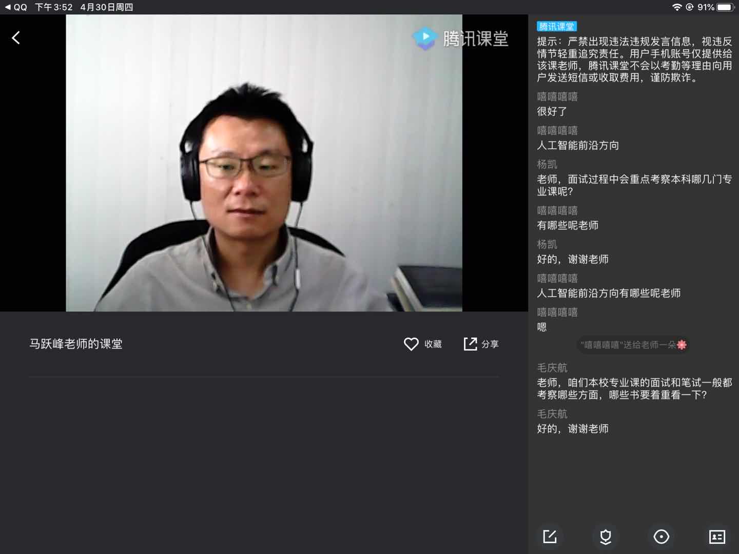 信息科学与工程学院高度重视2020届考研学子复试的相关工作,4月30日下午三点召开2020届考研复试线上指导会,马跃峰老师受邀出席并担任主讲,16级考研过线学子参加了本次指导会活动。
