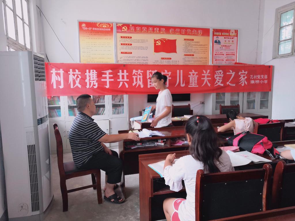 这是个由村校携手办成的专门为留守儿童义务教学的场所。从老师的口中我们了解到,大部分留守儿童都是和爷爷奶奶生活在一起,他们很少会像年轻的爸爸妈妈那样重视孩子们的学习问题,所以一般放长假都不会把孩子们送去补习班。再有就是经济条件不允许的情况也影响了孩子们的假期学习。在这里,村委会免费提供党员活动室给孩子们作为场地,空调饮水机电视桌椅板凳硬件设施一应俱全。村小学安排就近的在职老师给孩子们进行义务教学,同时将学校图书馆藏书带给孩子们阅读。