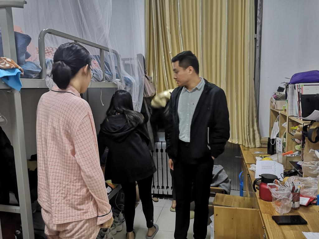 检查小组在纪玉超老师的带领下针对宿舍违规电器,宿舍用电安全方面进行重点检查。检查过程中,纪玉超老师指出个别宿舍中的用电风险,如插排的乱接问题,电脑的摆放问题等。同时,针对部分宿舍异味大,不整洁等问题,纪玉超老师叮嘱大家一定注意宿舍要保持干净整洁,门窗要常开,勤洗手,在公共场合戴好口罩。最后,纪玉超老师对检查结果进行总结,同学们将针对这些问题,贯彻落实宿舍管理制度,提高宿舍安全意识。