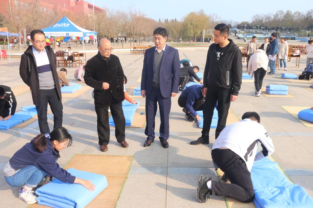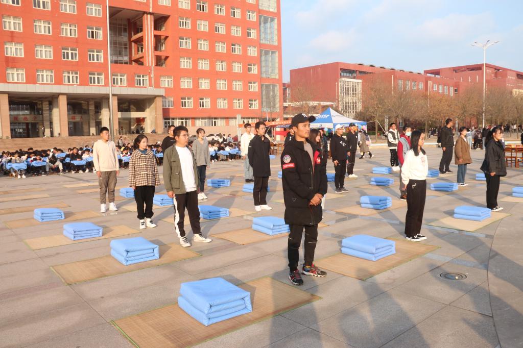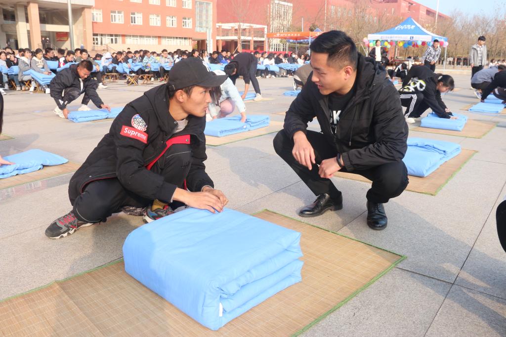 于日月广场成功举办叠被子大赛。学工处副处长、武装部副部长赵秀臣、斗地主