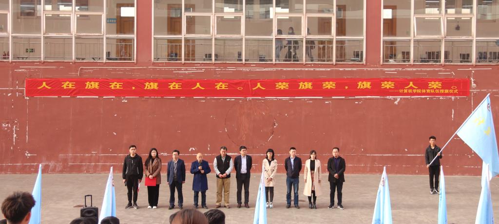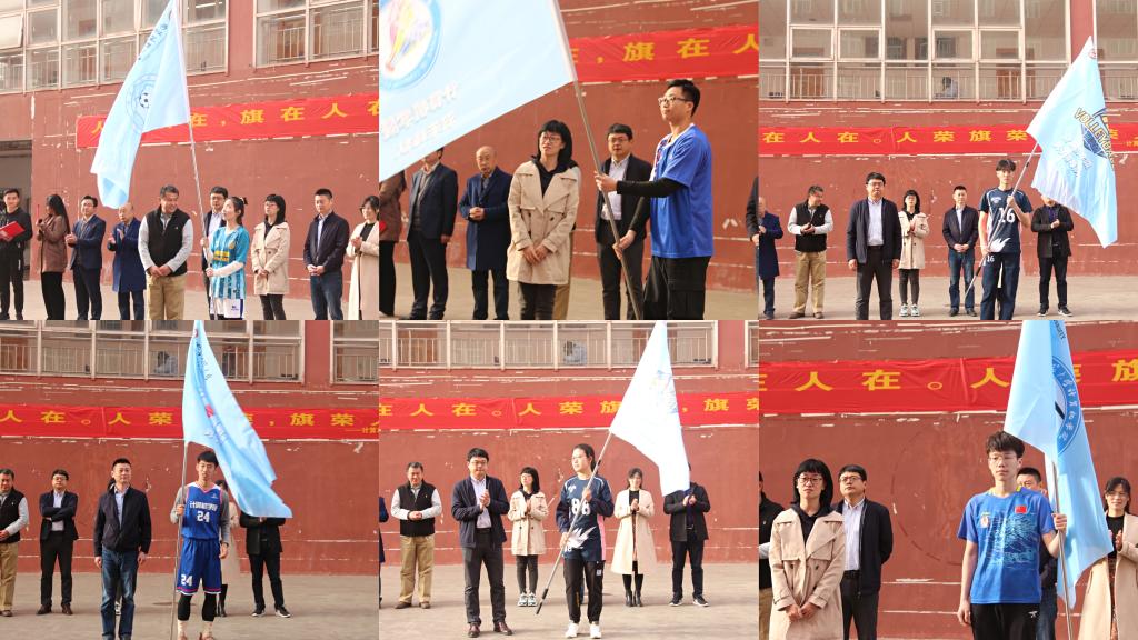 关于辅导员包带体育队伍的决定,并由姜付高、刘蓉、郑勇和姜振栋分别向男女子足球队、羽毛球队、乒乓球队、男女子排球队、男女子篮球队授旗。随后,队长代表和球队队员宣誓,他们表示:人在旗在,旗在人在,人荣旗荣,旗荣人荣,严格遵守比赛规则,赛出风格,赛出水平,努力为学院争光。最后,肖龙航对我院各球队的工作要求与期望做出重要指示,号召学生积极参加体育锻炼,养成健康向上的生活方式,希望大家团结协作,努力争取竞技成绩和精神文明双丰收,为我院体育事业发展作出新的贡献,并叮嘱大家在强化锻炼的同时注意自身安全。