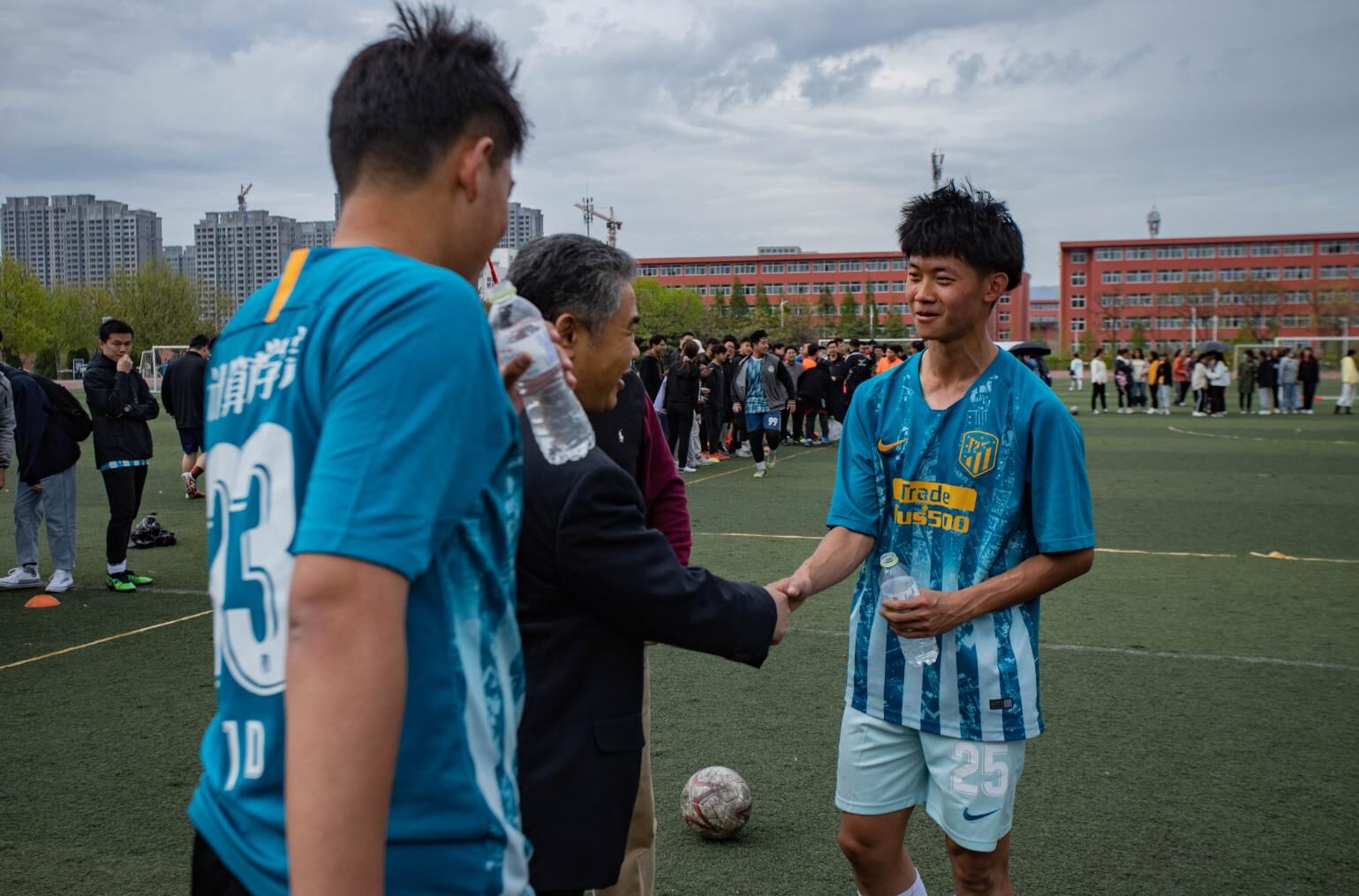 随着裁判的一声哨响,比赛开始,上半场两分半,我院李骏达发边线球,赢得开门红,上半场以1比0结束。下半场十分半,教职工从边路插上一脚破门,守门员马俊潇来不及反应,双方1比1平。十二分半,我院获得任意球机会,李骏达再次射门,比分来到2比1。十五分钟,教职工队近距离任意球,连续两次打中李骏达,造成手球,判点球成功罚进,双方2比2平。下半场伤停补时,双方未能取得进球,进入点球大战。在点球大战中,我院李骏达、丛正、孟繁龙破门成功,而守门员马俊潇成功扑出对方三记点球,我院成功取得胜利,获得冠军。比赛结束后,紧接着进行斗地主