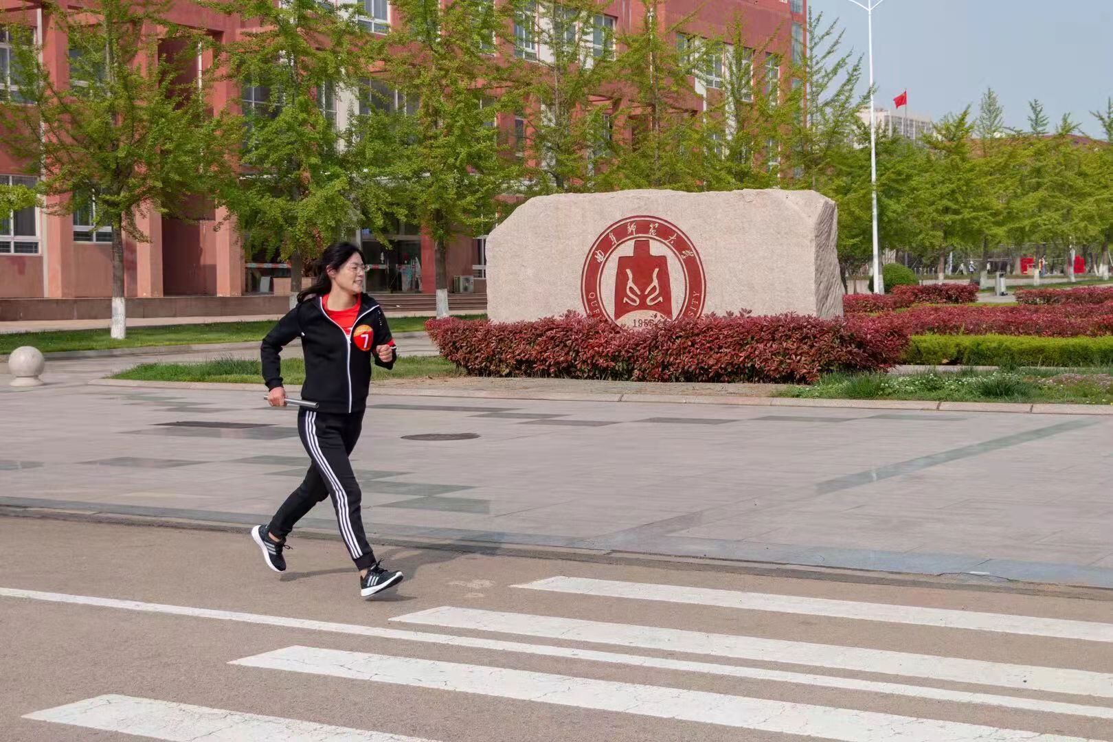下午两点半,参加健步走接力赛的教职工们个个意气风发、精神抖擞,蓄势待发,一声令下,教职工们抽取党史答题卡并手持接力棒,迈着矫健的步伐开始比赛。教职工们沿指定路线从儒风酒店正门口出发,按照逆时针方向环校园路进行健步接力。各位参赛老师需在健步行进过程中找到题目的正确答案,在学习红色文化的同时,欣赏校园美景、享受运动乐趣。