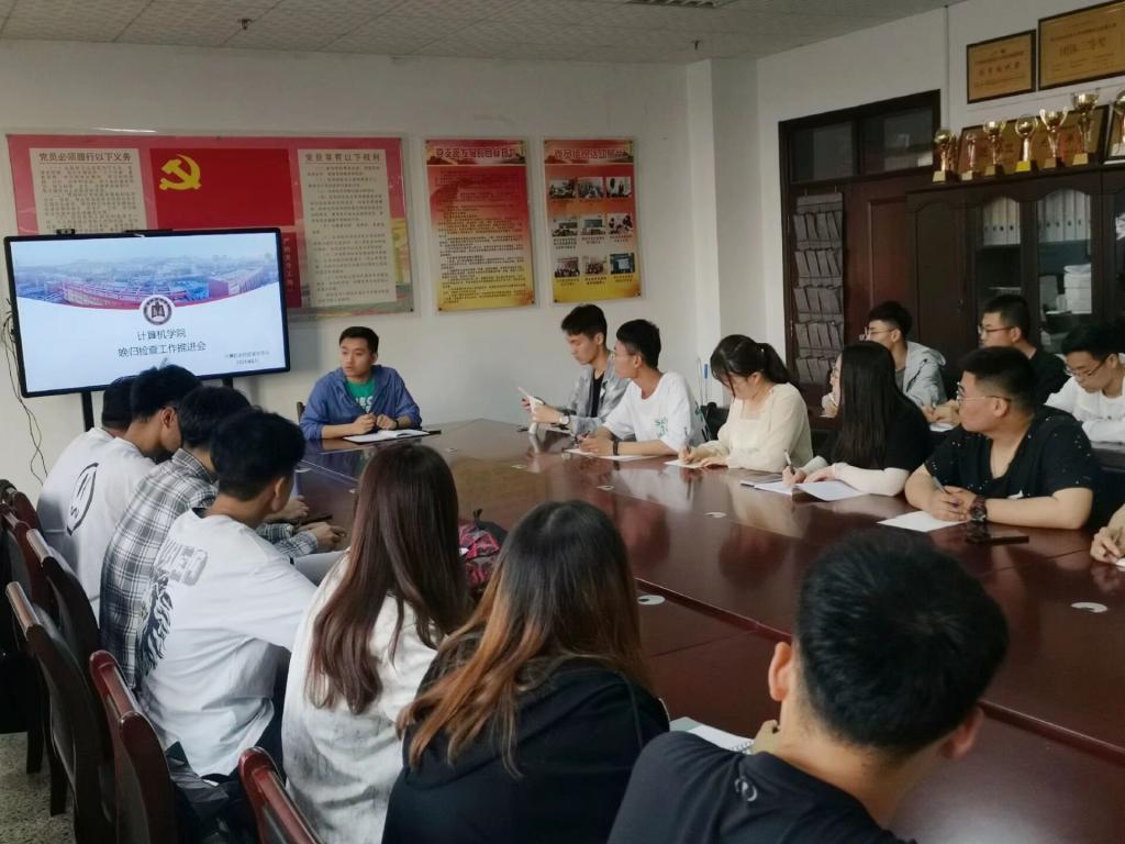 召开晚归检查工作推进会。2018级辅导员纪玉超主持本次会议,宿管部和纪检部全体成员参加此次会议。