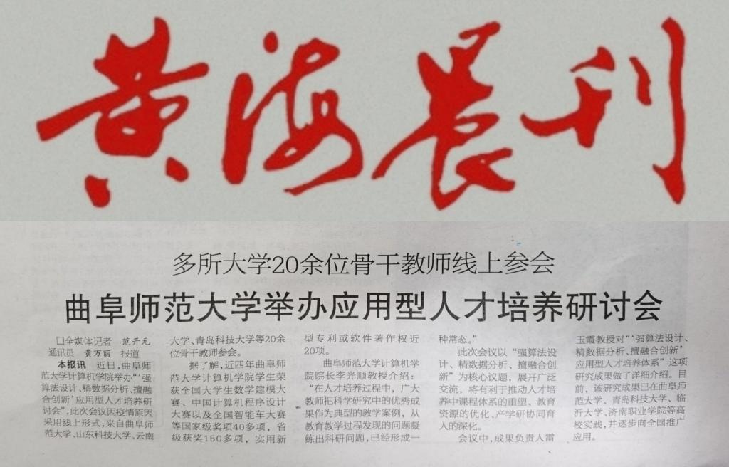 近日,我院成功举办“‘强算法设计、精数据分析、擅融合创新’应用型人才培养研讨会”,《黄海晨刊》于2021年11月5日报道此次会议。