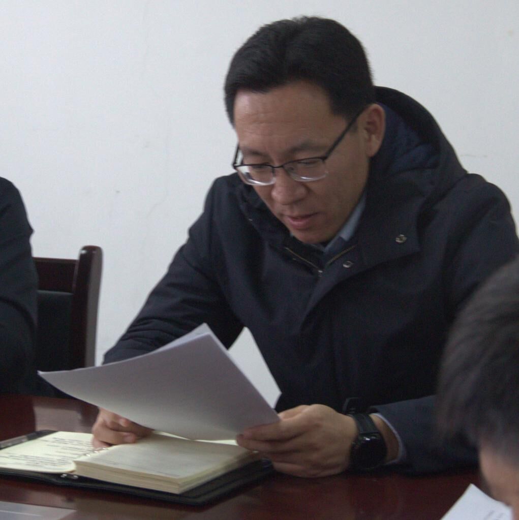 图2.于健书记带领与会人员学习讲话精神