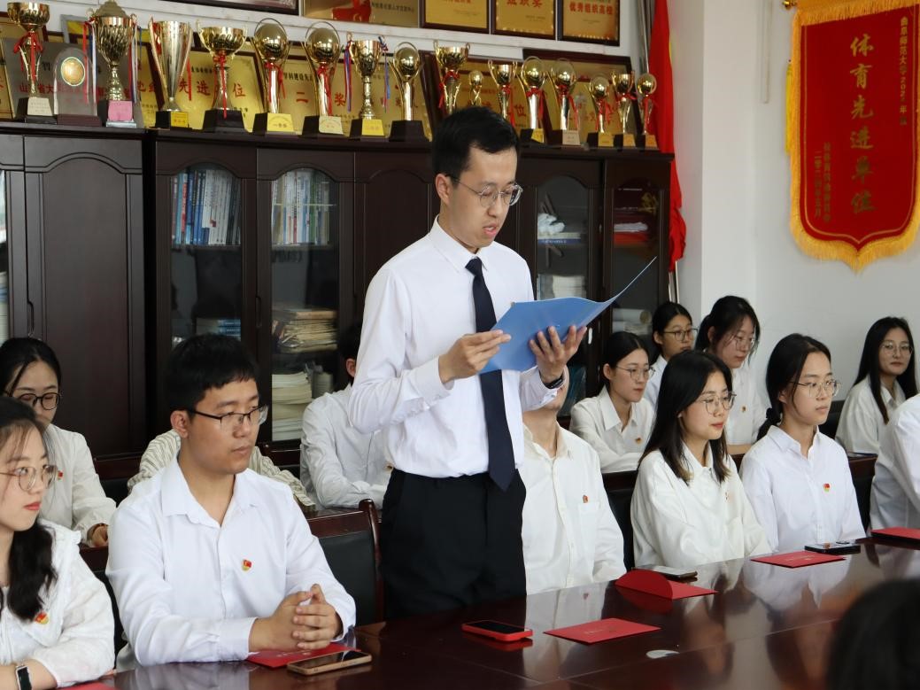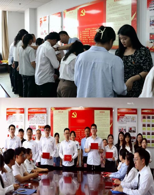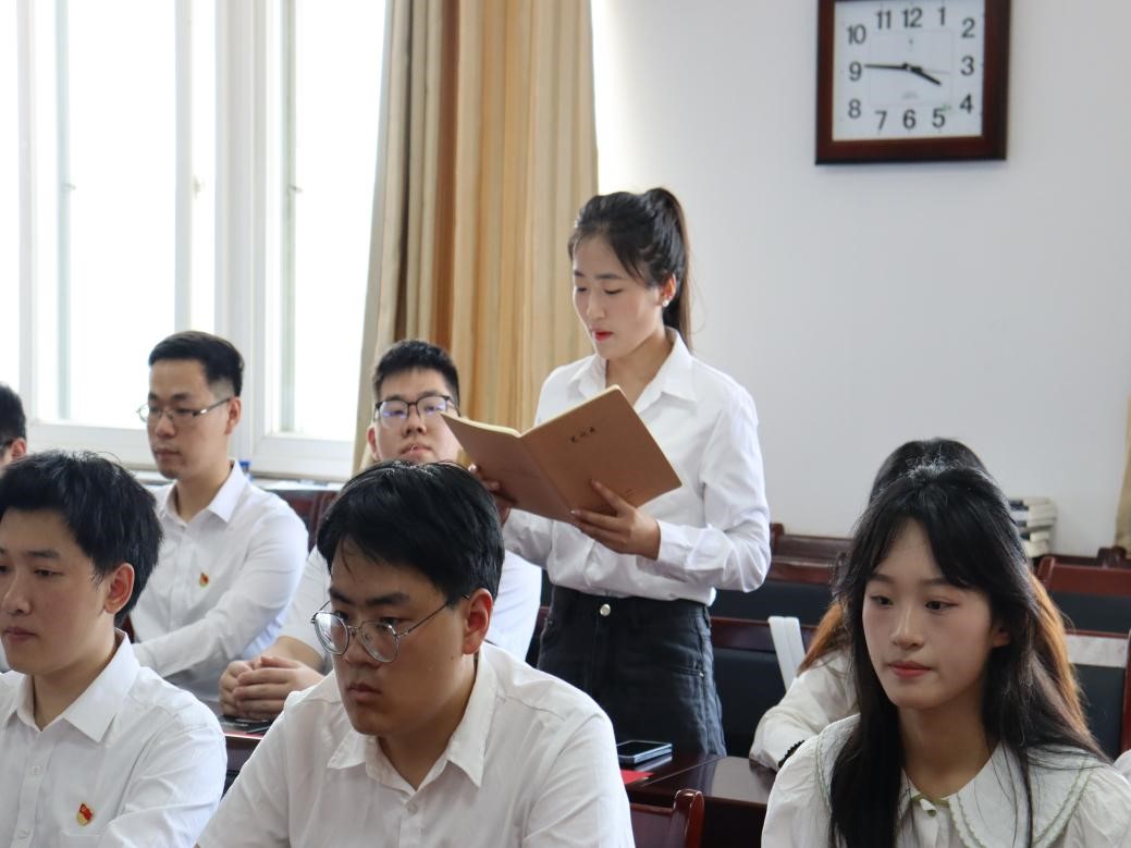 毕业生党员代表焦迪领誓,重温入党誓词,铭记入党初心。