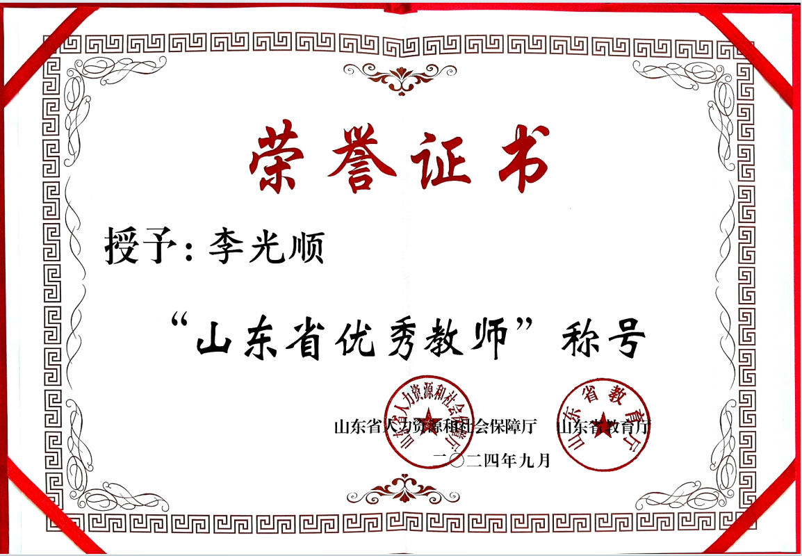 9月10日,“山东省庆祝第40个教师节暨优秀教师表彰活动”在济南隆重举行,院长李光顺教授喜获“山东省优秀教师”荣誉称号。