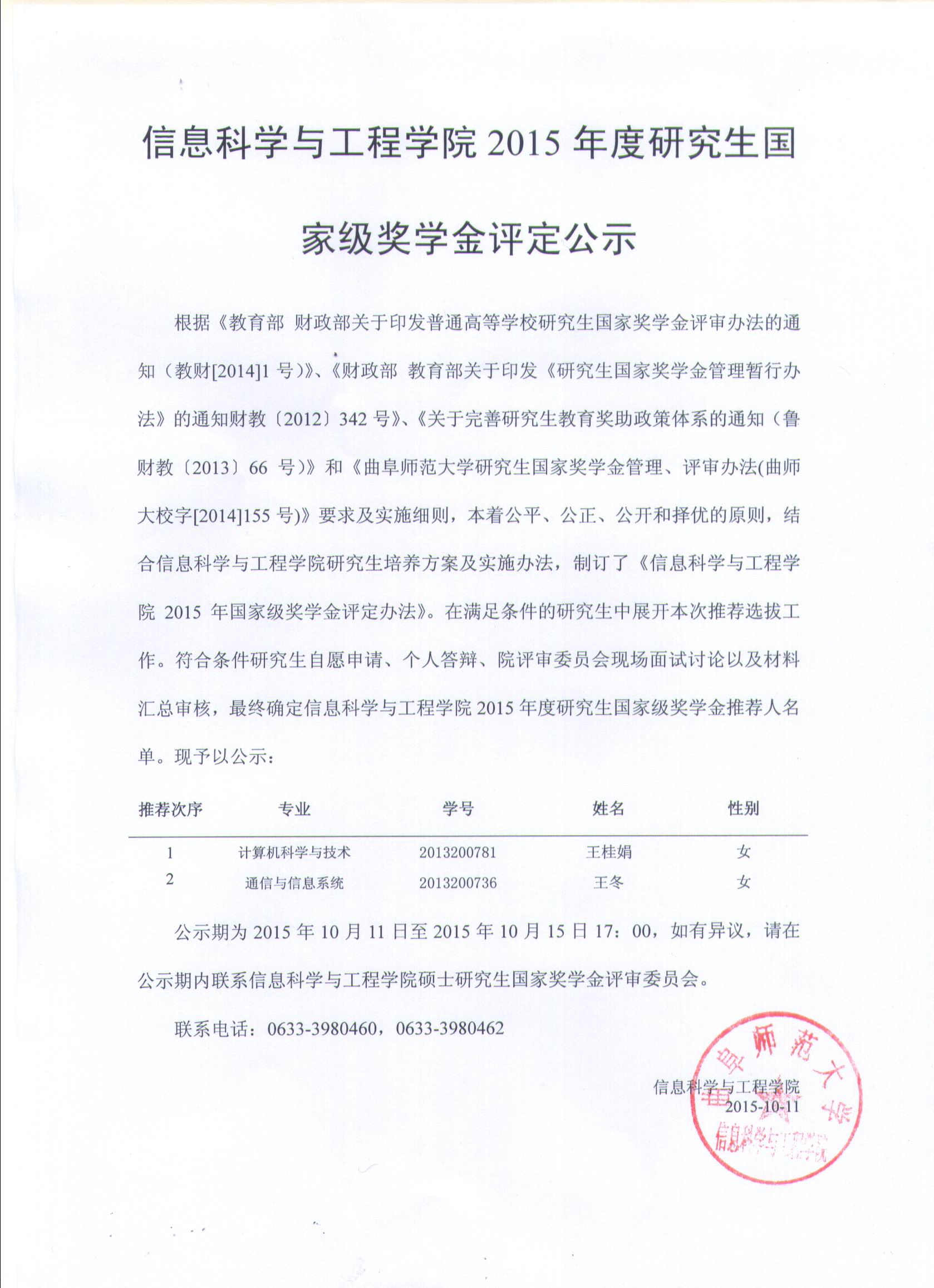 下一条: 信息科学与工程学院2016年优秀应届本科生免试攻读硕士研究生推荐人名单公示