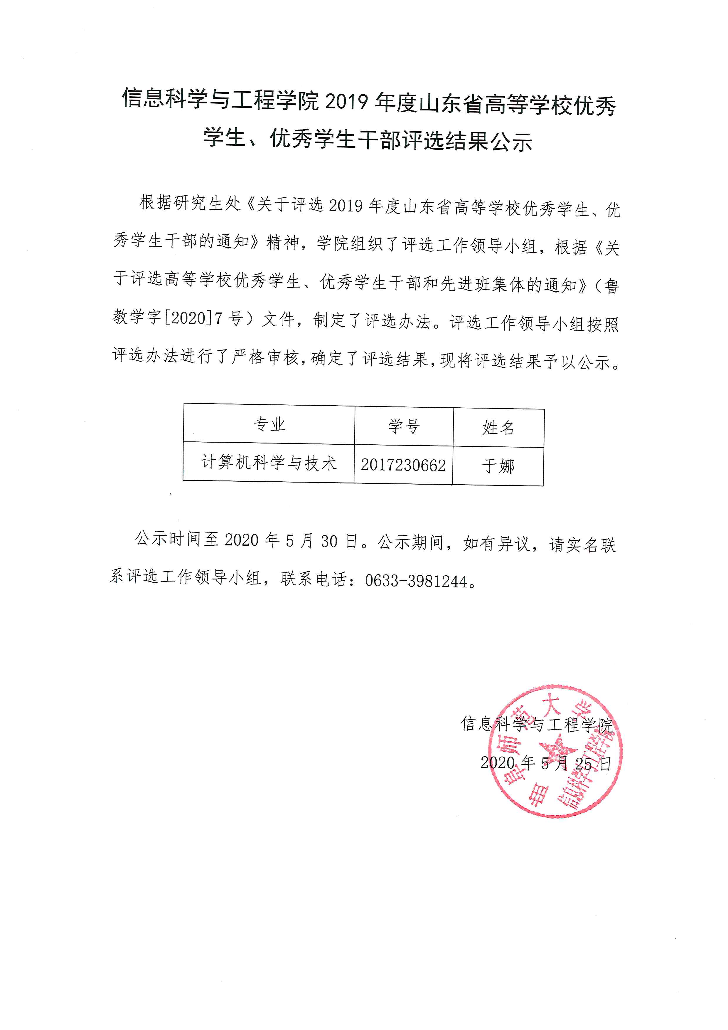 上一条: 信息科学与工程学院2020年上半年毕业研究生学位论文答辩工作细则
