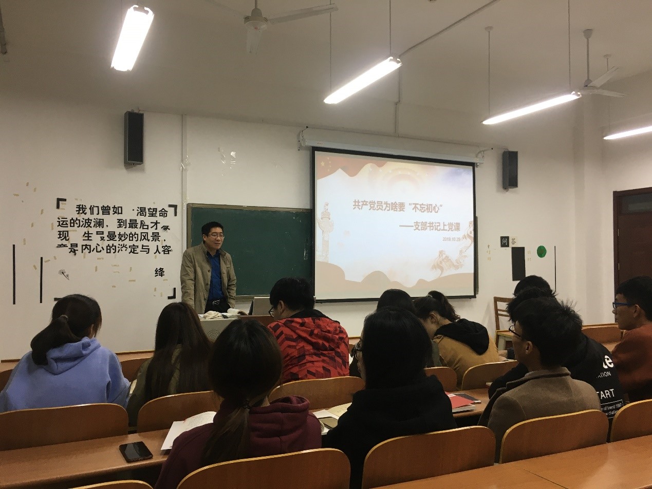 2019年10月29日晚,信息科学与工程学院研究生党支部与s410教室开展“共产党员为啥要‘不忘初心’---支部书记上党课”主题党日活动。支部书记尚军亮老师以及全体研究生党员参加本次活动。活动由研究生党支部书记尚军亮老师主持。