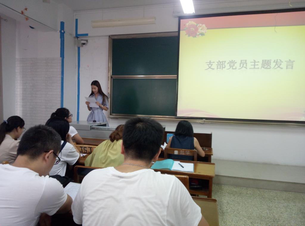 首先,支部书记夏小娜老师发表重要讲话,她强调支部党员要充分学习习近平总书记重要讲话的重大意义,切实把思想和行动统一到讲话精神上来,旗帜鲜明讲政治,切实提高政治站位,进一步牢固树立四个意识,以讲话精神为指导,切实掀起建过硬支部、做合格党员、当干事先锋的新热潮,严格要求自己,在研究生群体中起到模范带头作用。