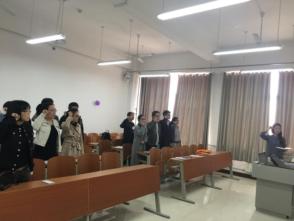 活动在庄严的国歌声中开始,全体党员佩戴党徽,面向党旗重温入党誓词;支部书记夏小娜老师带领全体研究生党员学习学校党委“我是党员,跟我走”主题实践活动实施意见,并结合研究生党支部实际,讨论主题实践活动的具体实施方案;全体党员由所在党支部作出共性承诺内容,每位党员又结合个人情况填写个性承诺内容,并在会议中面对党组织和全体党员宣读承诺书,作出郑重承诺。