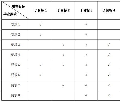 说明:毕业要求对培养目标子目标的支撑用“√”表示。