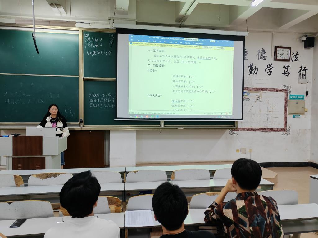 各部门部长依次介绍了本部门具体工作职责和纳新要求及流程,鼓励新同学积极加入到学院研究生学团干部队伍中来,充分发挥学生团体的作用,服务学院、服务同学,共同推动学院事业的蓬勃发展。