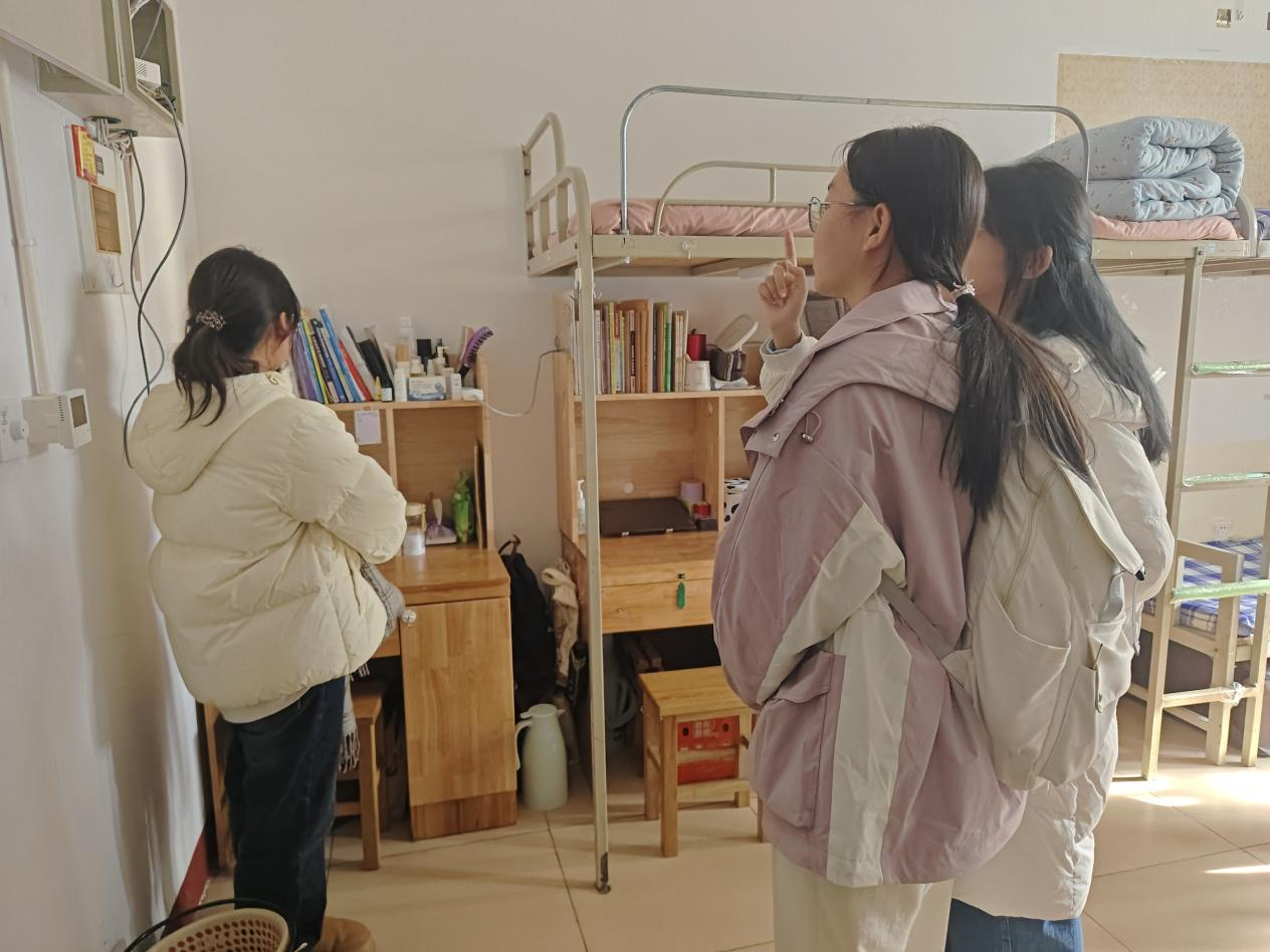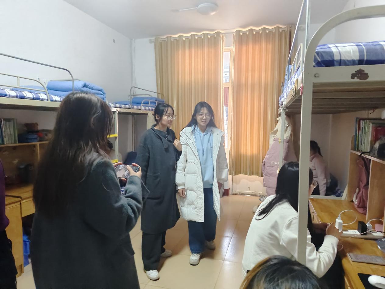 开展党建团建进宿舍活动,在学院团委副书记李钰萌、学生会副主席徐瑞凯的带领下,24级班团组成检查小组进入学生宿舍对卫生安全问题进行检查宣讲。