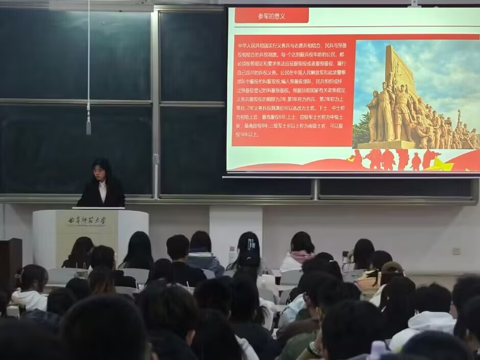 活动伊始,学院举办征兵宣讲会,宣讲人详细介绍兵役登记、应征入伍报名条件、大学生参军优惠政策以及退伍后的保障政策等方面内容。同时,学院还邀请了退伍军人和优秀退役士兵分享自己的军旅故事和入伍感想,激发了同学们的爱国热情和参军意愿。