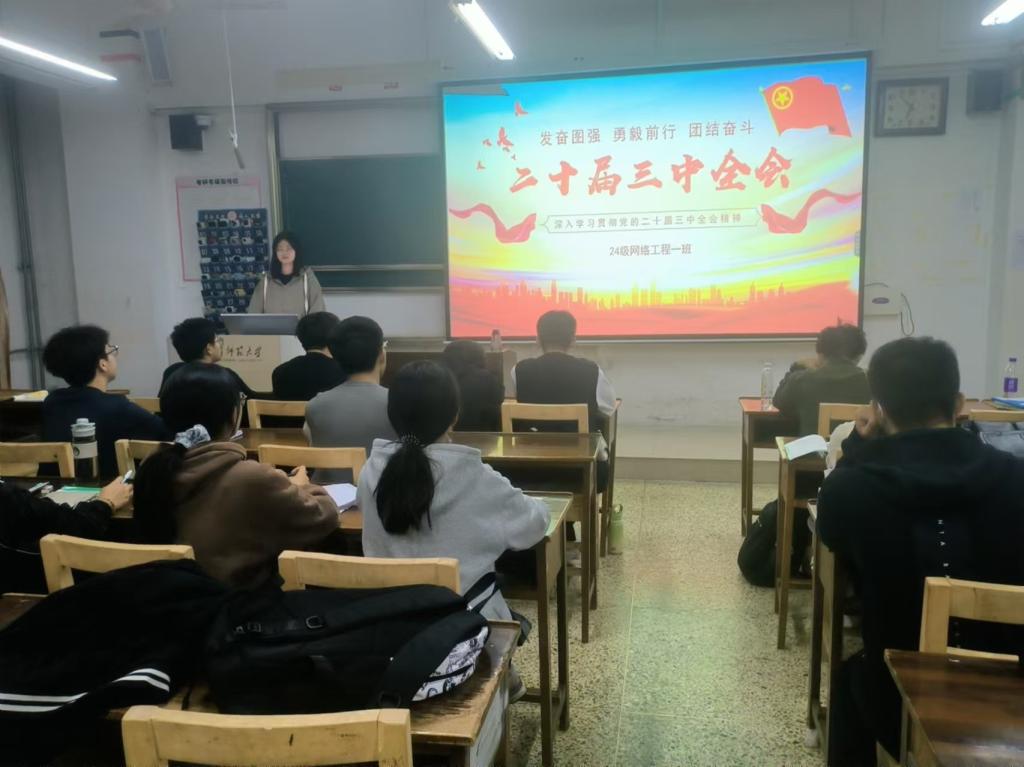 团课伊始,团支书向同学们介绍了党的二十届三中全会召开的背景、重要意义和主要内容,强调了全会在以中国式现代化全面推进强国建设、民族复兴伟业进程中的重要地位。