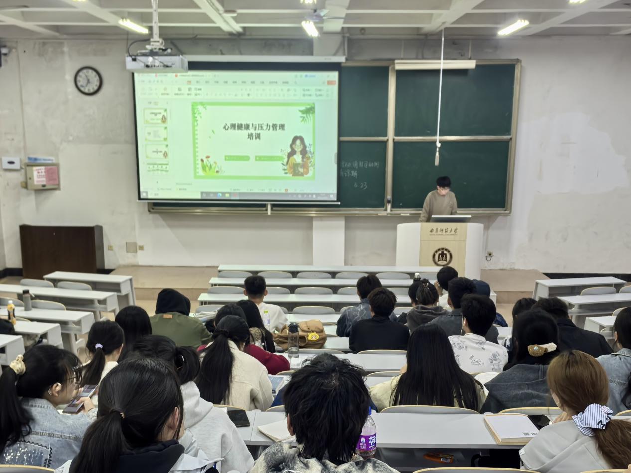 心理部主讲人首先以常见的心理压力问题为切入点,通过案例和数据分析了压力对生活和学习的影响。随后,他从认知调整、情绪管理、时间规划等方面介绍了压力管理技巧,并带领学员进行放松训练,帮助大家掌握减压方法。