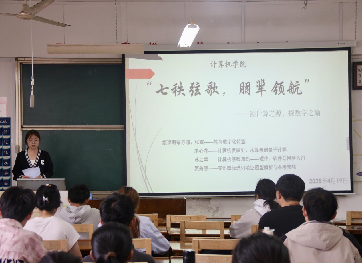 活动中,四位朋辈导师各展所长、立足实际,依次进行课堂展示。张露结合实际案例,介绍了教育领域数字化变革的趋势与应用;宋心萍向同学们详细阐述了从简易计算工具到现代计算机的发展历程;苏之军用浅显易懂的方式讲解了计算机基础知识;贾美慧结合个人经验,分享了四级英语考试中选词填空的技巧与方法。