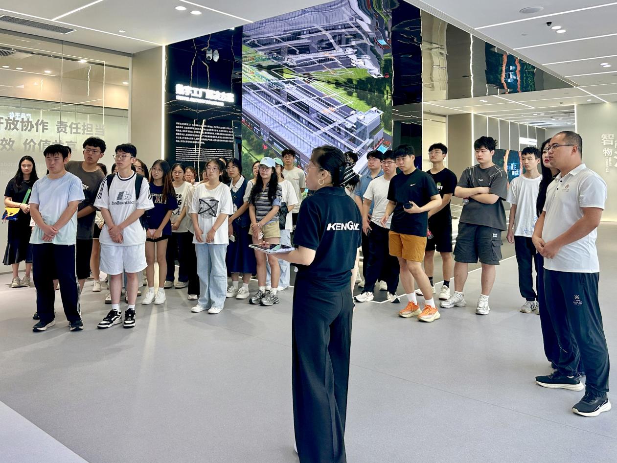 在青岛科捷智能科技有限公司,师生们通过参观智能展厅和仓储生产车间,了解了公司的发展历程、斗地主、业务范围、核心技术与主要产品,同时详细探究了企业如何通过物流、仓储到整体工厂三位一体的自动化、智能化升级,成功实现精益生产、降本增效和数智化转型的全过程。